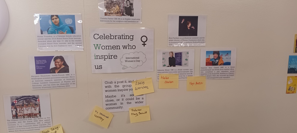 Members were invited to write the name of an inspirational woman on a post-it note and also contribute a favourite female writer too. We also so had a small book swap with the left over books being donated to Oxfam.